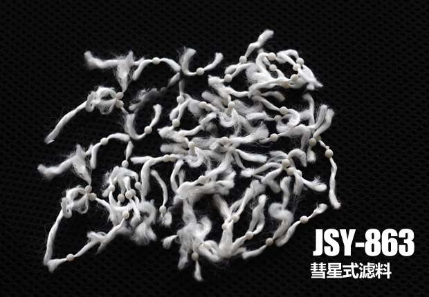 過濾時,由于核心和纖維絲束的比重差,核心起到了對纖維的壓密作用,由于核心尺寸較小,過濾斷面空隙分布的均勻性影響不大,起到過濾狀態(tài)既有縱向深層過濾,又有橫向深層過濾,從而提高了濾床的截污量、過濾精度和過濾速度。反沖洗時,由于核心和纖維絲束比重差,纖維絲束隨反沖洗水流而散開產(chǎn)生較強的擺動,再經(jīng)過空氣擦洗,濾料之間相互碰撞產(chǎn)生較強的擺動、翻轉(zhuǎn),強化了反沖洗時濾料受到的機械作用力,使附著在纖維絲束表面的懸浮物顆粒很容易脫落,提高了纖維過濾體反沖洗洗凈度,反沖洗耗水量小。